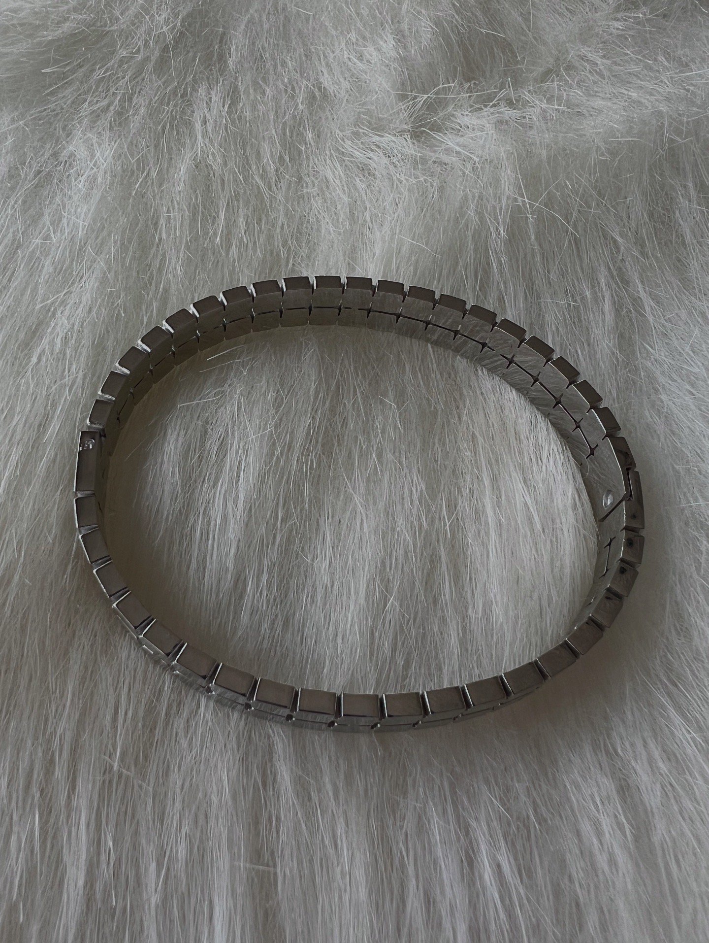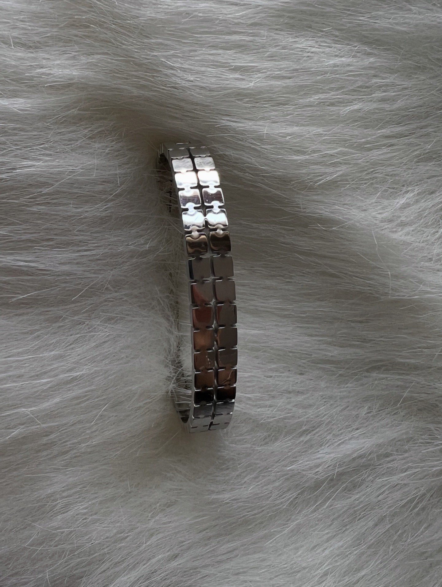 Güçlü duruş, zarif detay! Modern ve sade tasarımıyla öne çıkan bu çelik kelepçe bileklik, bileğinizde minimal ama iddialı bir şıklık sunar. Parlak ve dayanıklı yapısıyla günlük kullanıma uygun, her stile kolayca uyum sağlayan zamansız bir parçadır.