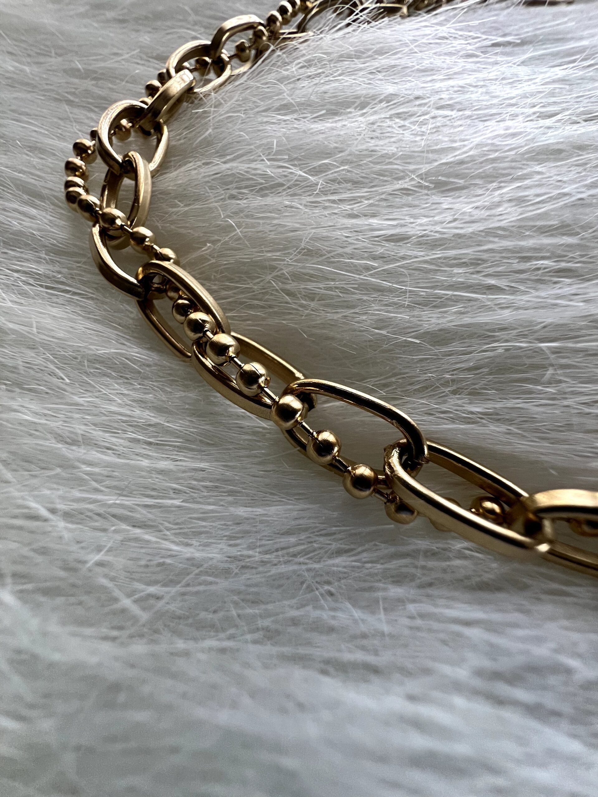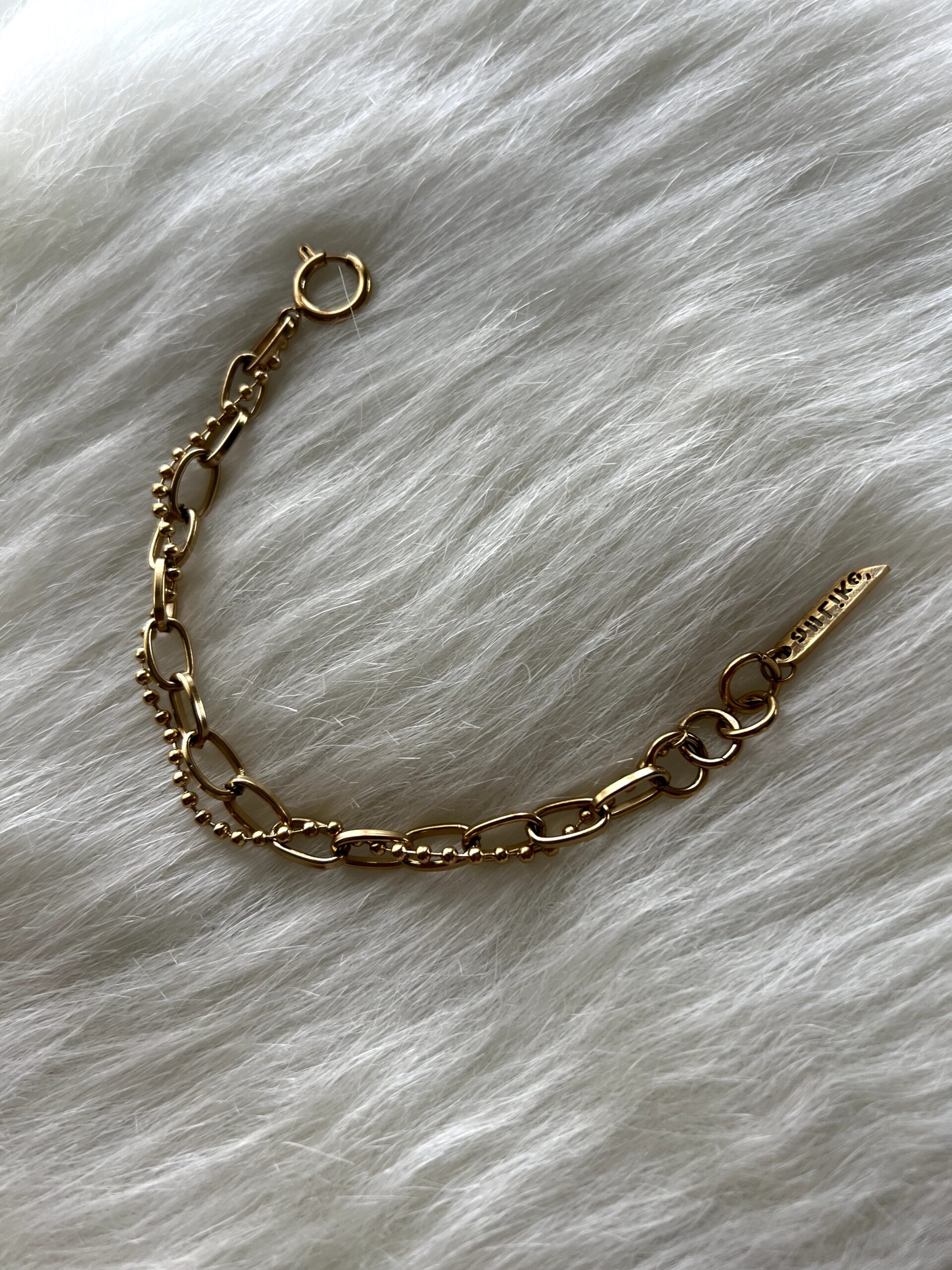 Zincirlerin şıklıkla buluştuğu tasarım! Dolanmış zincir formuyla dikkat çeken bu gold çelik bileklik, bileğinizde modern ve iddialı bir duruş sergiler. Parlak yüzeyi ve sağlam yapısıyla hem şık hem de dayanıklı bir aksesuardır.